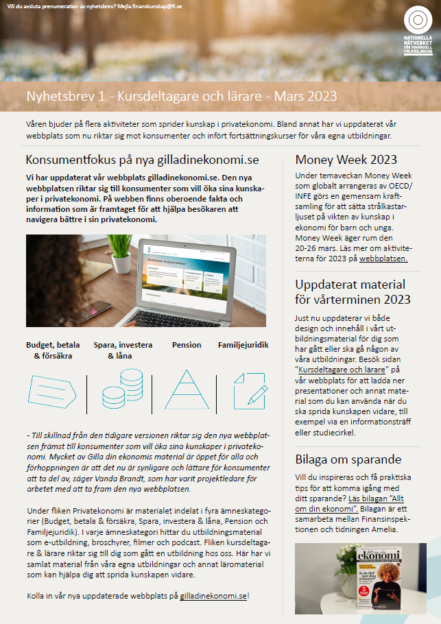 Utbildningssidor från andra aktörer inom Nationella nätverket för finansiell folkbildning som erbjuder kostnadsfria föreläsningar för dig som lärare och dina elever.